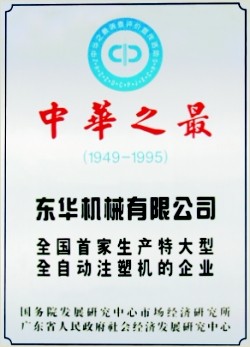 1993年东华公司在国内首先突破特大型海角网的设计和工艺技术,成功设计制造出国内首台2500吨合模力的TTI-2500B特大型海角网,(填补了我国大型海角网的空白),获得了国务院颁发的“中华之最”荣誉证书;同年在国内塑机行业首家获得高新技术企业认定证书和ISO9001质量体系认证证书; 2001年研制出国内第一台环保节能高效的电动海角网;2004年,被广东省科技厅评为优秀高新技术企业。